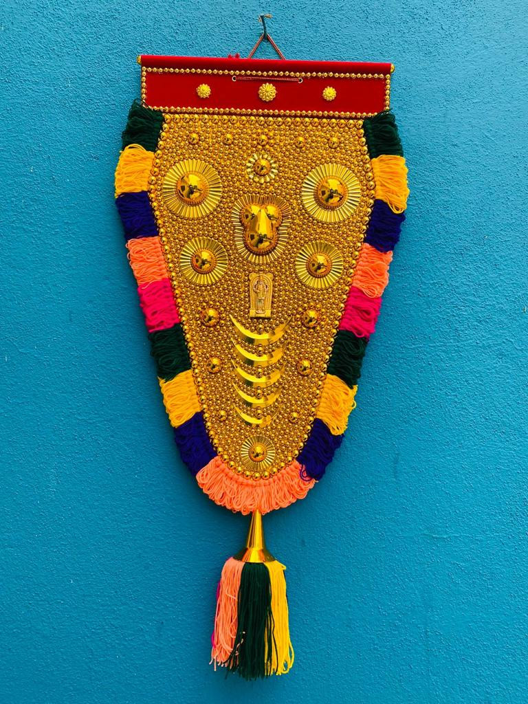 Nettipattam or Elephant Caparisons are a classic hand made decorative item for Home and other indoor places. Nettipattam is mainly used to adorn the forehead and tusk of temple Elephants during festivals in Kerala. More than 100 Elephants adorn this master piece during the famous Pooram festival in Kerala.