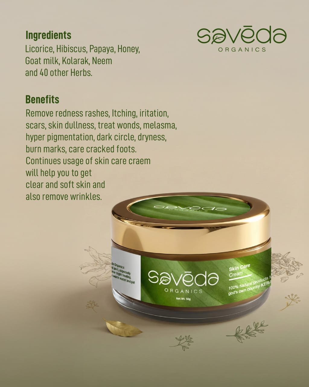 Saveda Organics Herbal Skin Care Cream (50gm) | Natural Soothing Moisturizer for Dry, Itchy & Irritated Skin | Ayurvedic Blend for Daily Skin Protection